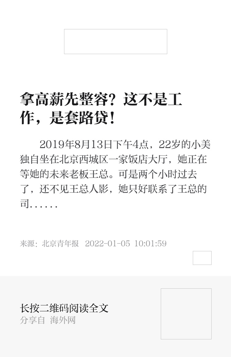 在多个招聘平台上以高薪为诱饵寻找求职者,再以职位对外在形象有要求等理由让求职者贷款做整形手术。