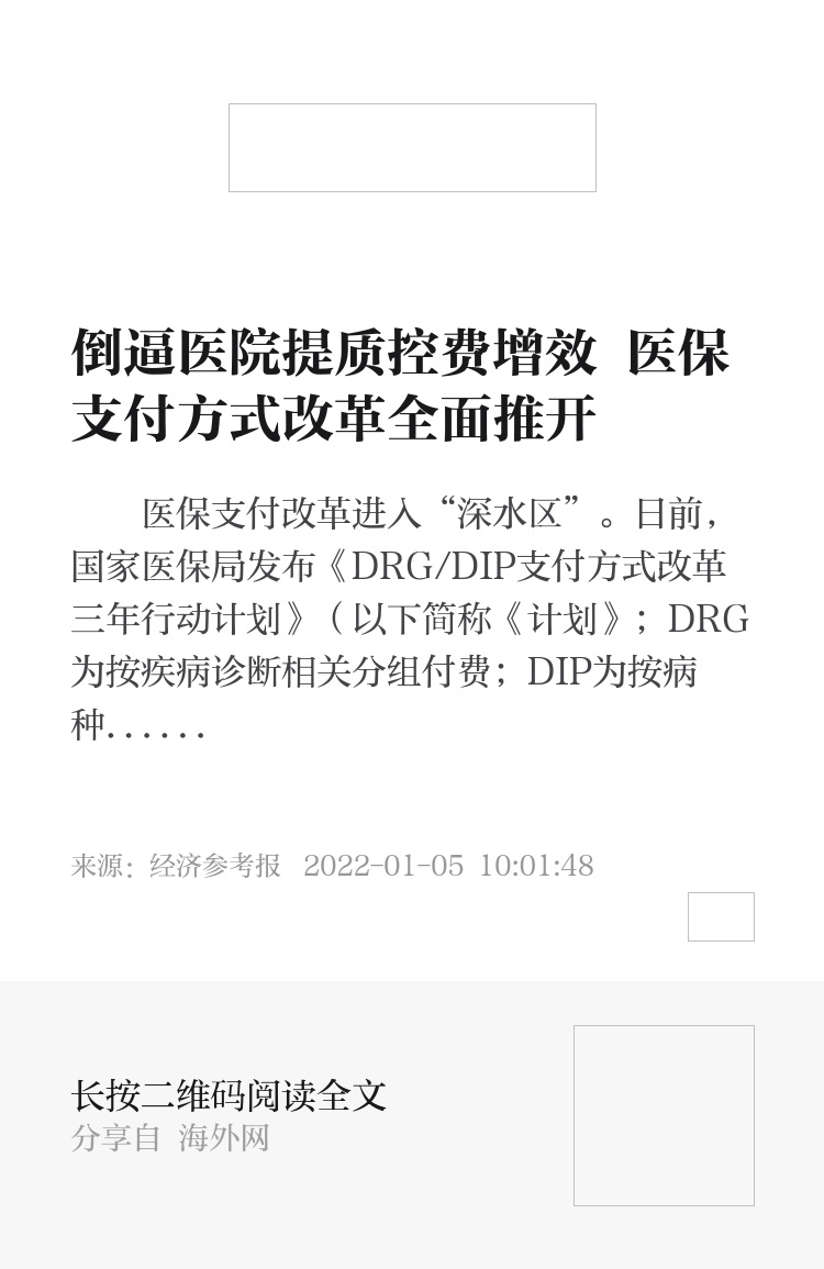 资料显示,DRG是按照患者的患病类型、病情严重程度、治疗方法等因素,把病人分入临床病症与资源消耗相似的诊断相关组,以组为单位打包确定医保支付标准。DIP是利用大数据将疾病按照“疾病诊断+治疗方式”组合作为付费单位,医保部门根据每年应支付的医保基金总额确定每个病种的付费标准。这两种改革都是通过打包定价的方式,促进医疗机构转变运行机制,促使医疗服务提供方主动控制成本,为参保群众提供健康所需要的最适宜的服务。