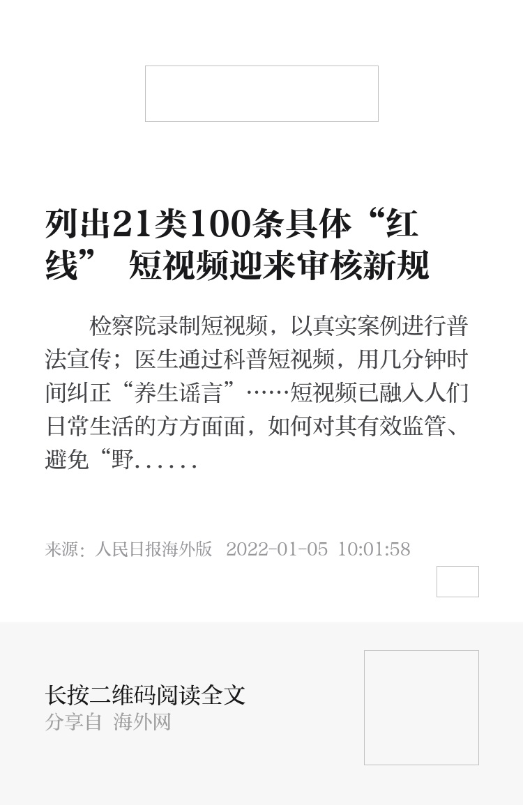 检察院录制短视频,以真实案例进行普法宣传;医生通过科普短视频,用几分钟时间纠正“养生谣言”……短视频已融入人们日常生活的方方面面,如何对其有效监管、避免“野蛮生长”成为一道必答题。中国网络视听节目服务协会日前发布《网络短视频内容审核标准细则》(2021)(以下简称2021版《细则》),列出21类100条具体“红线”,为平台审核短视频提供了更直观、可执行的依据。