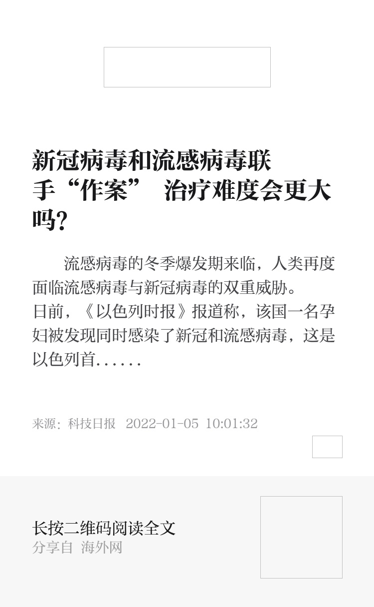 日前,《以色列时报》报道称,该国一名孕妇被发现同时感染了新冠和流感病毒,这是以色列首例“共同感染”病例。不过,该媒体特别指出,“一些报道称,这是世界上首例此类双重感染病例,但早在2020年春季,美国就出现了流感和新冠共同患者的报道”。