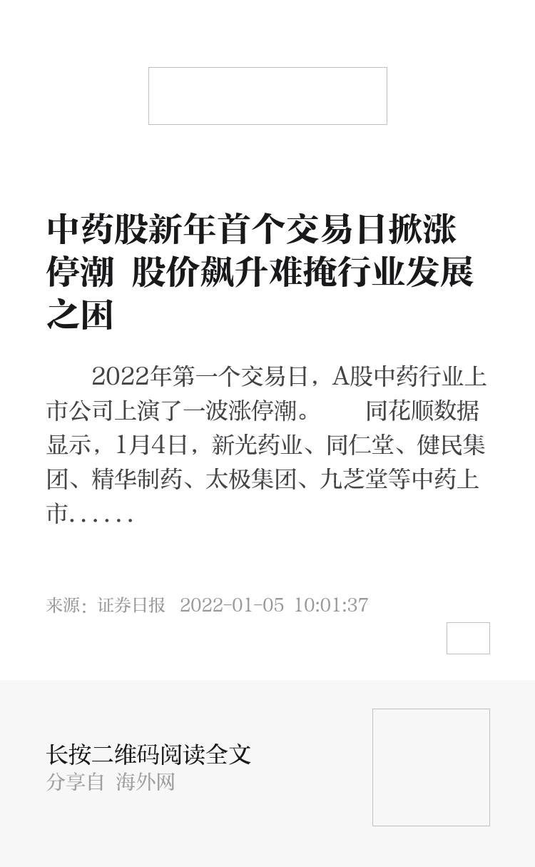 2022年第一个交易日,A股中药行业上市公司上演了一波涨停潮。