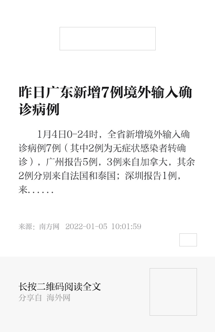 1月4日0-24时,全省新增境外输入确诊病例7例(其中2例为无症状感染者转确诊),广州报告5例,3例来自加拿大,其余2例分别来自法国和泰国;深圳报告1例,来自美国;佛山报告1例,来自澳大利亚。新增境外输入无症状感染者9例,均为广州报告,3例来自东帝汶,其余6例分别来自蒙古、孟加拉国、伊朗、肯尼亚、坦桑尼亚和埃塞俄比亚。新增出院4例,目前在院127例。