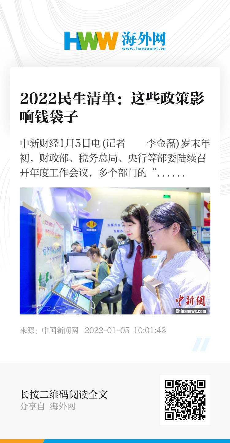 中新财经1月5日电(记者 李金磊)岁末年初,财政部、税务总局、央行等部委陆续召开年度工作会议,多个部门的“掌门人”也公开发声,2022民生清单中,一系列政策将会影响你我的钱袋子。