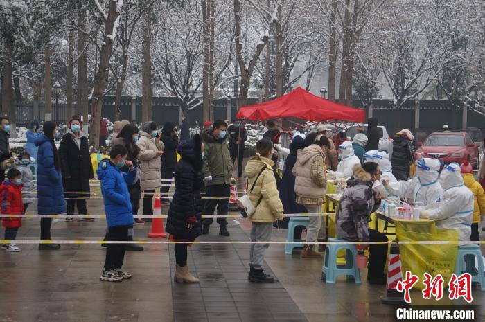 根据郑州市疫情防控指挥部部署,1月5日,郑州市开展全民核酸检测,全市1260余万人将分区、分时段错峰在两天时间里检测完毕。在雪后寒潮中,郑州市民们也就此开启2022年第一次核酸检测。