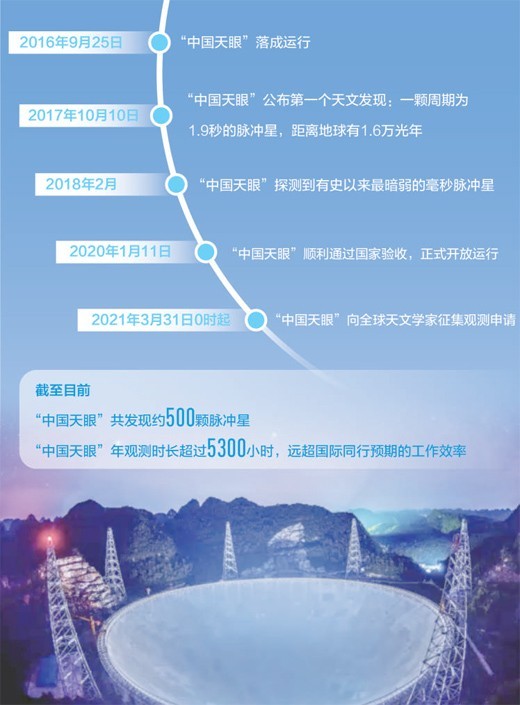 科技创新离不开国际合作和开放共享。“中国天眼”在建设之初,即确立了按国际惯例逐步开放的原则。2021年3月31日0时,“中国天眼”正式向全球开放共享,向全球天文学家征集观测申请。