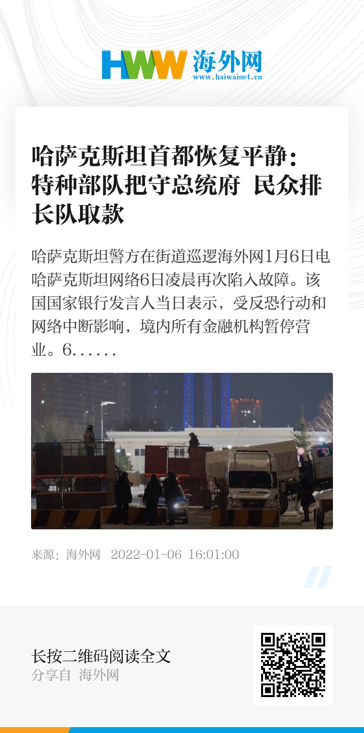 哈萨克斯坦支付系统受网络中断影响出现故障,由于国家银行暂停所有金融机构运营,银行和货币交易所关门,大部分自动取款机也不再运行,仅有少数取款机还在运作。民众在这些仍运作的取款机前排起长队,试图提取现金。