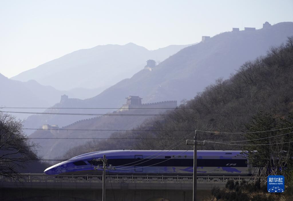 1月6日,北京冬奥列车亮相京张高铁。据介绍,北京冬奥列车全部使用时速350公里复兴号动车组开行,并配备5G超高清演播室。冬奥列车编组8辆,定员564人,外观采用“瑞雪迎春”涂装方案,彰显冬奥主题。北京冬奥列车将在1月21日至3月16日的冬奥运输期间开行,每日安排开行40对运输方案,其中基本方案17对,每日开行;预备方案23对,视需开行。新华社记者 鞠焕宗 摄