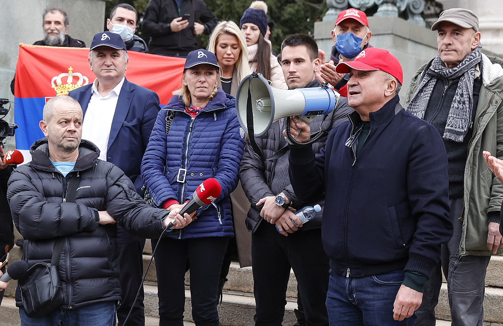 2022年1月7日讯,塞尔维亚网球名将德约科维奇入境澳大利亚被扣留,其父亲与球迷在家乡集会抗议。图片来源:视觉中国