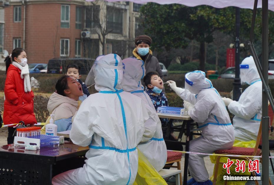 1月7日,河南郑州,市民正在接受核酸检测。当日,郑州在市域内开展第二轮全员核酸检测。中新社记者 刘鹏 摄
