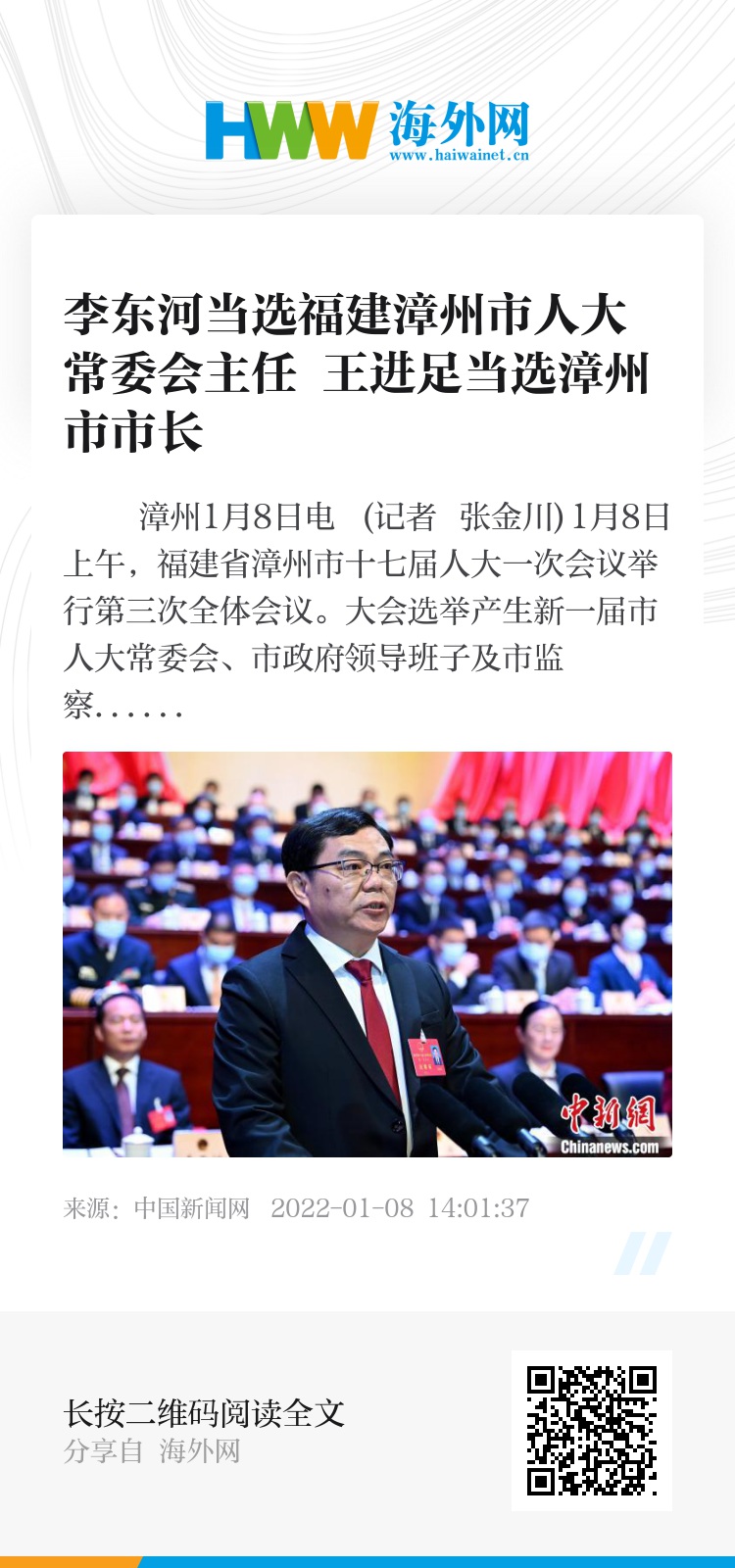 王进足当选为漳州市人民政府市长,侯为东、胡栋良、兰万安、林晓东、崔为磊、潘全胜、郑立敏、余向红、林少金当选为副市长;