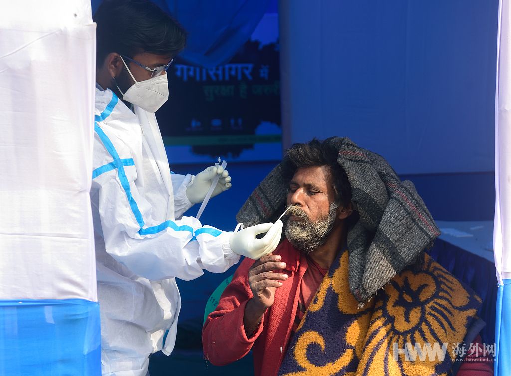 当地时间2022年1月7日,印度加尔各答,当地僧人进行新冠检测。