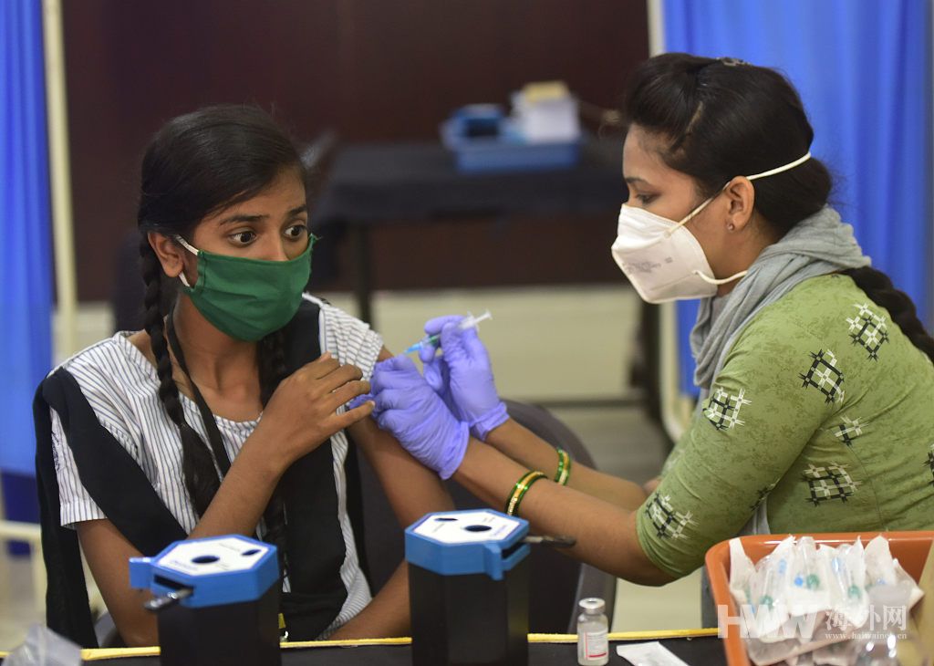 当地时间2022年1月7日,印度孟买,当地为15-18岁青少年接种新冠疫苗。(图:视觉中国)