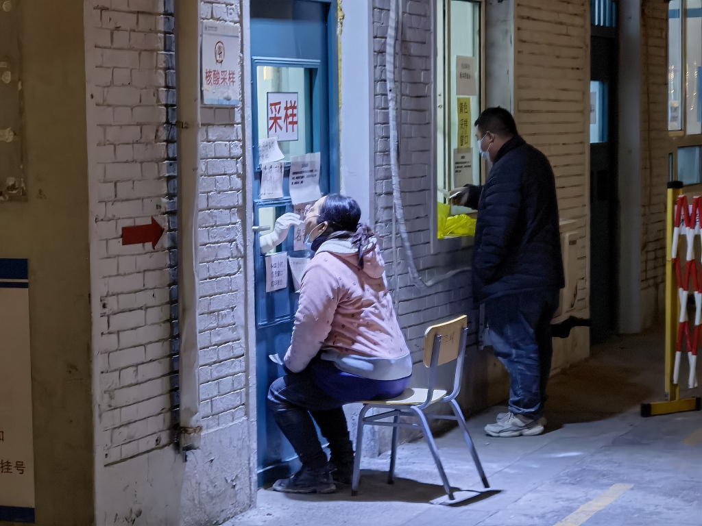 1月8日,天津各大医院核酸检测点市民排起长队检查核酸。图为天津第四中心医院检测点。图片来源:人民视觉