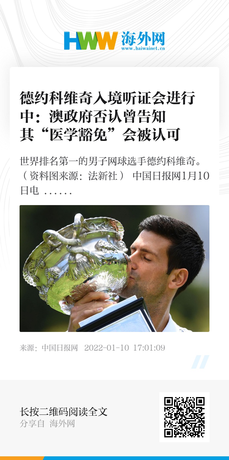 另据路透社报道,德约科维奇在前往澳大利亚前似乎已经获得“医学豁免”的条件,并在抵达机场时出示了相关证明。不过,根据CNN的报道,澳政府表示,德约科维奇并没有提供任何不能接种新冠疫苗的医学理由,他误以为自己可以入境,但实际上并没有这种“保证”。此外,澳政府还否认德约科维奇被告知“医学豁免”会被认可一事。