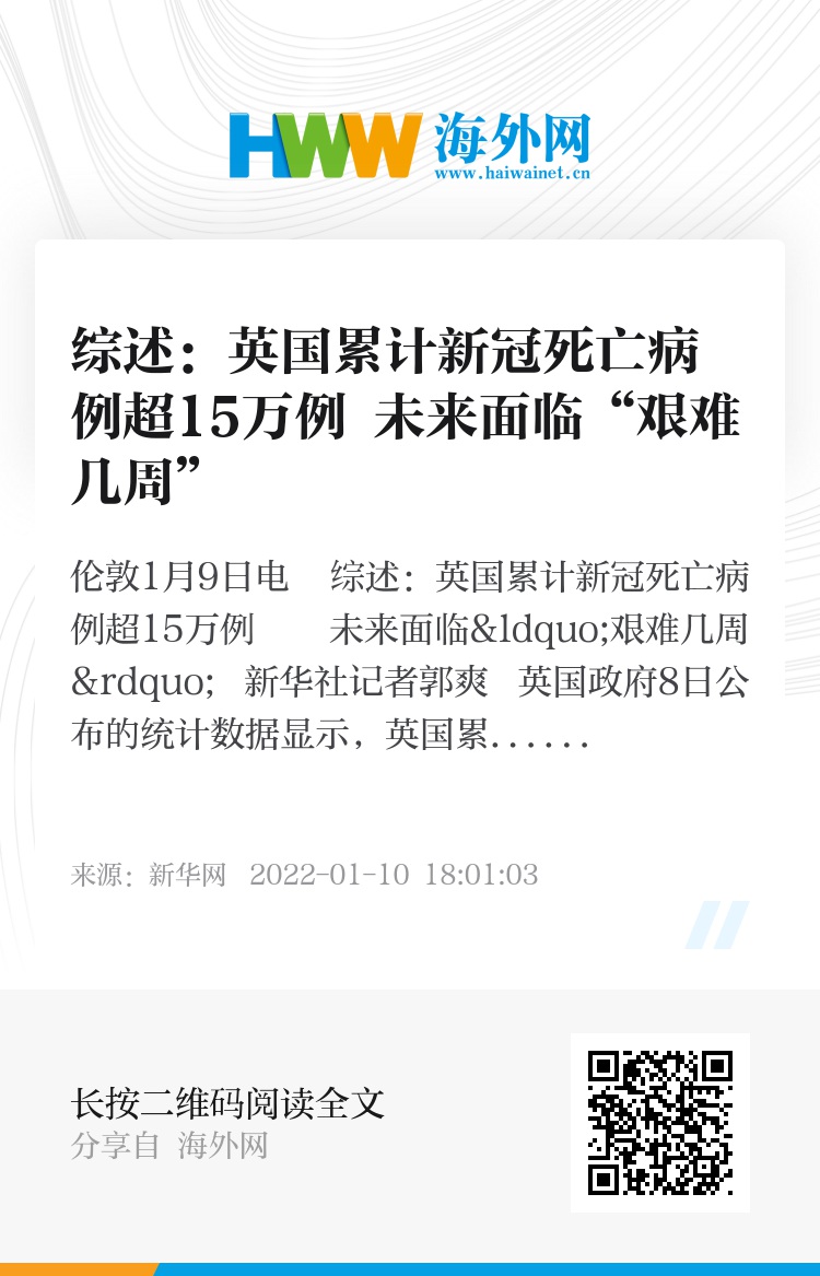 新华社伦敦1月9日电 综述:英国累计新冠死亡病例超15万例 未来面临“艰难几周”