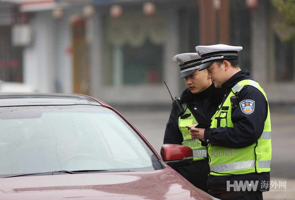 2022年1月10日,湖南省张家界市武陵源区交通民警在路面检查车辆。(图:视觉中国)