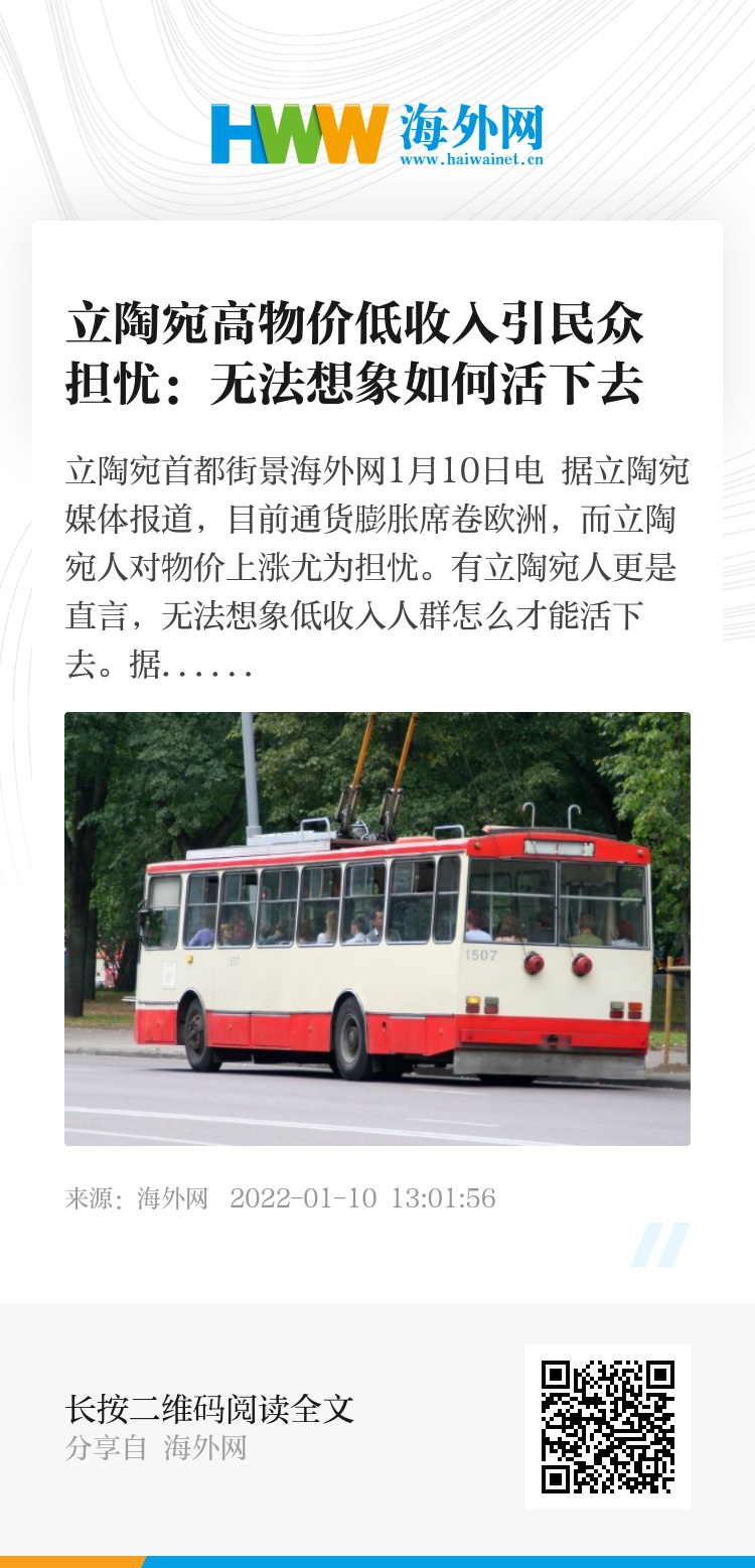 海外网1月10日电 据立陶宛媒体报道,目前通货膨胀席卷欧洲,而立陶宛人对物价上涨尤为担忧。有立陶宛人更是直言,无法想象低收入人群怎么才能活下去。