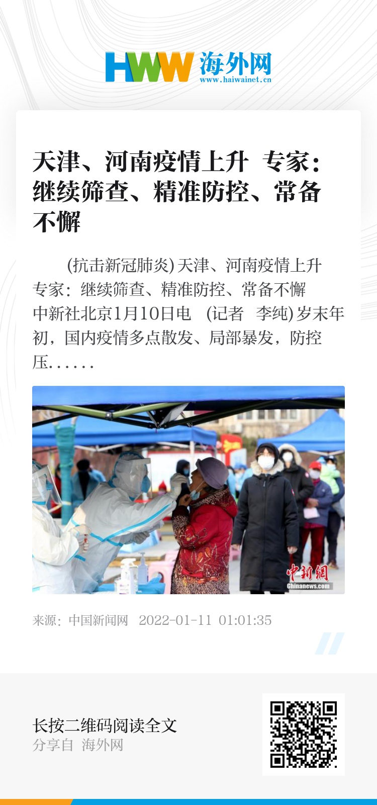 (抗击新冠肺炎)天津、河南疫情上升 专家:继续筛查、精准防控、常备不懈