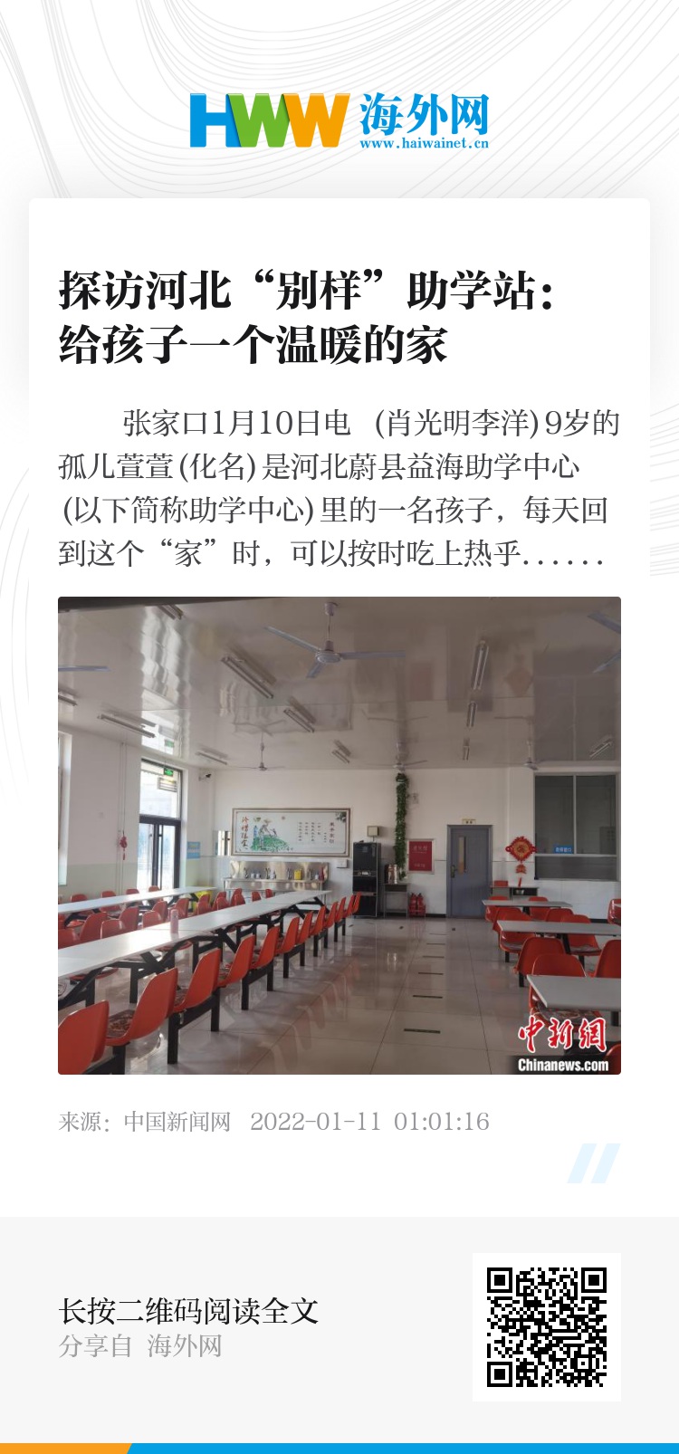 中新网张家口1月10日电 (肖光明李洋)9岁的孤儿萱萱(化名)是河北蔚县益海助学中心(以下简称助学中心)里的一名孩子,每天回到这个“家”时,可以按时吃上热乎饭,通过学习舞蹈也令她变得开朗自信。