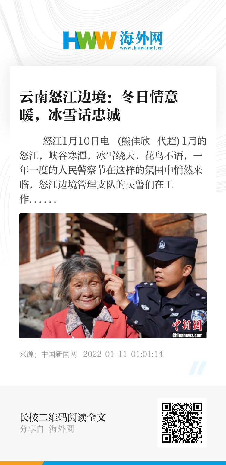 中新网怒江1月10日电 (熊佳欣 代超)1月的怒江,峡谷寒潭,冰雪绕天,花鸟不语,一年一度的人民警察节在这样的氛围中悄然来临,怒江边境管理支队的民警们在工作岗位上度过自己的节日,他们沾满泥泞的脚上、布满风霜的脸庞里尽显忠诚。