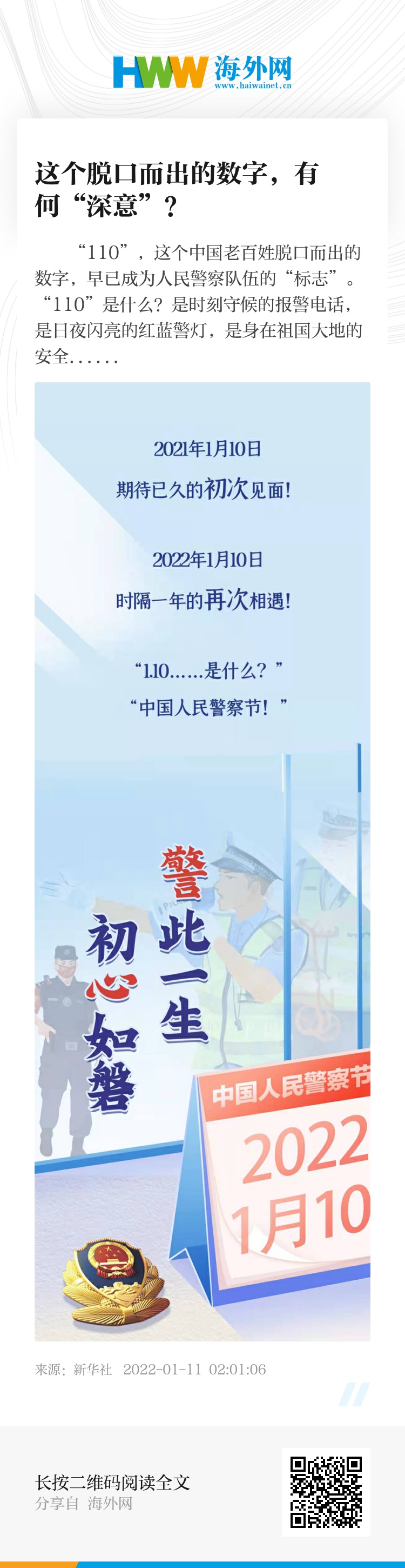 “110”,这个中国老百姓脱口而出的数字,早已成为人民警察队伍的“标志”。“110”是什么?是时刻守候的报警电话,是日夜闪亮的红蓝警灯,是身在祖国大地的安全感,更是一群人夜以继日的无私奉献。