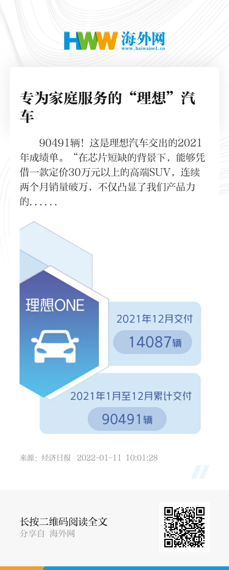 90491辆!这是理想汽车交出的2021年成绩单。“在芯片短缺的背景下,能够凭借一款定价30万元以上的高端SUV,连续两个月销量破万,不仅凸显了我们产品力的强大,同时实现了中国品牌向上新突破和产业高质量发展。”理想汽车创始人、董事长兼首席执行官李想说。