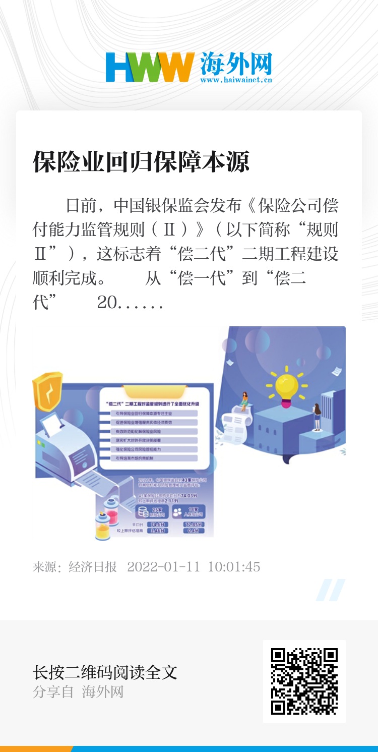 银保监会有关负责人表示,“偿二代”二期工程建设注重引导保险业回归保障本源、专注主业,增强服务实体经济能力,有力有效防范保险业风险,加大加快以金融业全面对外开放为目标,对“偿二代”监管规则进行了全面优化升级。