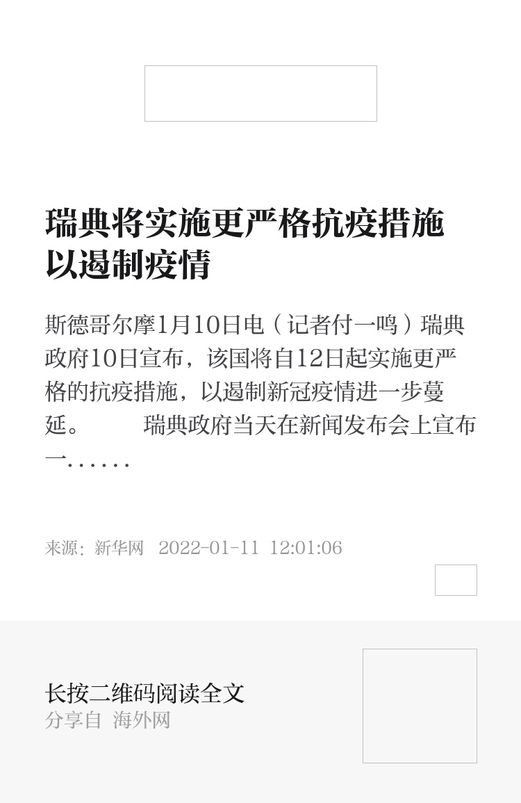 新华社斯德哥尔摩1月10日电(记者付一鸣)瑞典政府10日宣布,该国将自12日起实施更严格的抗疫措施,以遏制新冠疫情进一步蔓延。