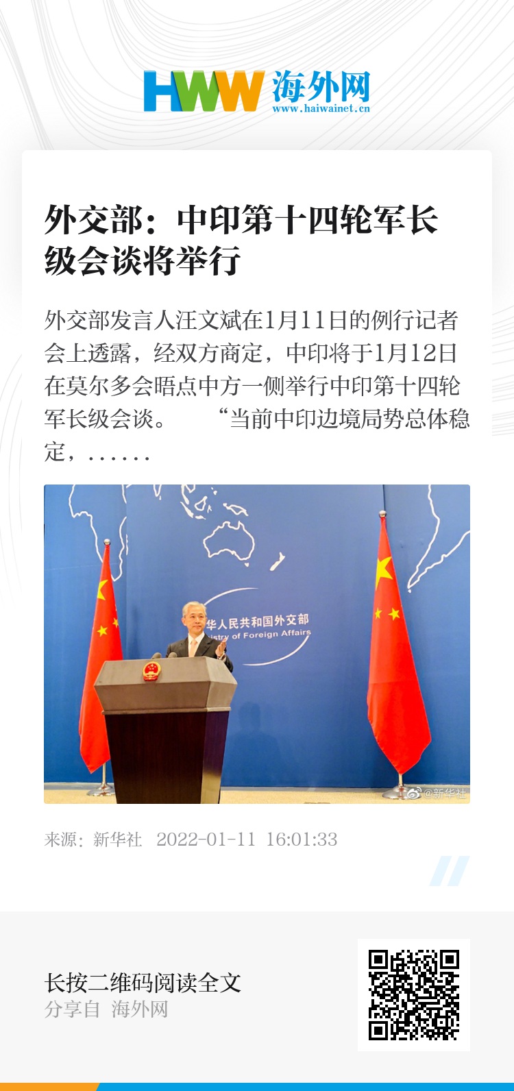 外交部发言人汪文斌在1月11日的例行记者会上透露,经双方商定,中印将于1月12日在莫尔多会晤点中方一侧举行中印第十四轮军长级会谈。 “当前中印边境局势总体稳定,中印两国正通过外交和军事渠道保持对话沟通。”他说,希望印方能同中方相向而行,推动边境事态尽快从应急处置转入常态化管控阶段。(记者朱超、董雪)