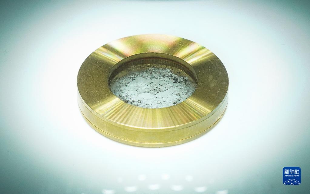 这是航展上展示的月壤(2021年9月26日摄)。在广东珠海举行的第十三届中国国际航空航天博览会上,国家航天局展区展出嫦娥五号返回舱、降落伞以及由嫦娥五号取回的月球样品实物等,吸引了观众的目光。新华社记者 刘大伟 摄
