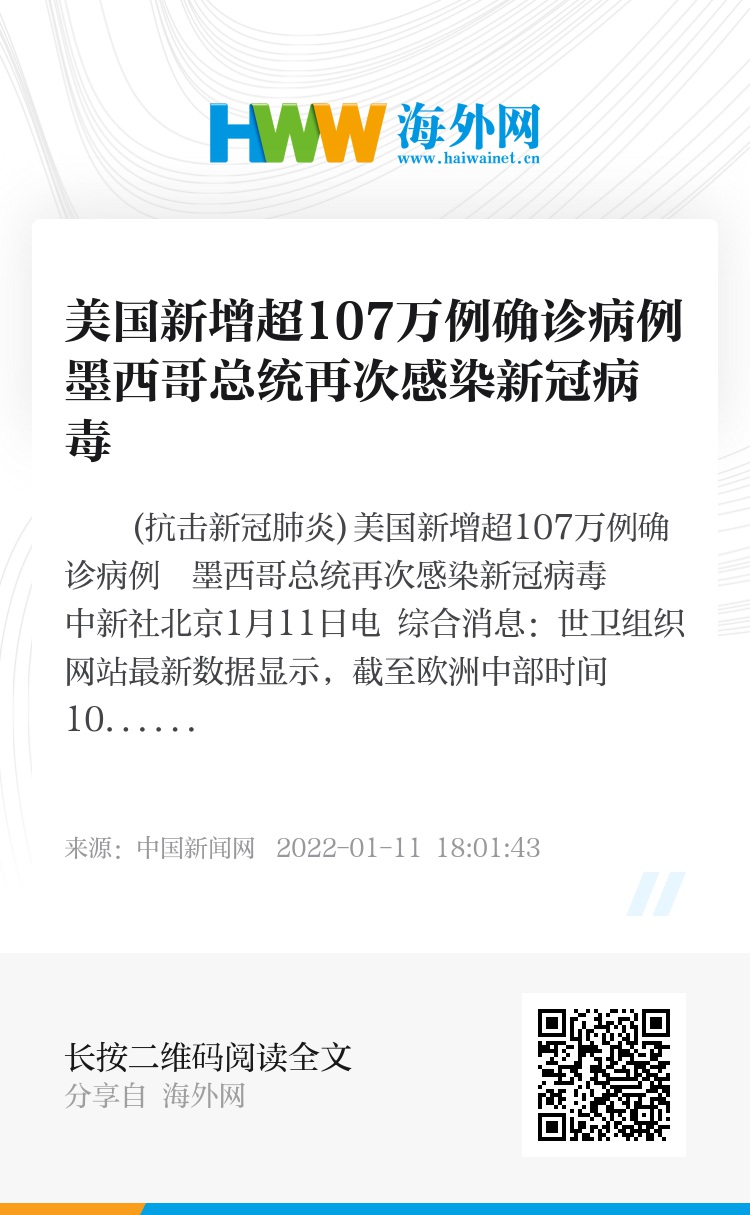 (抗击新冠肺炎)美国新增超107万例确诊病例 墨西哥总统再次感染新冠病毒