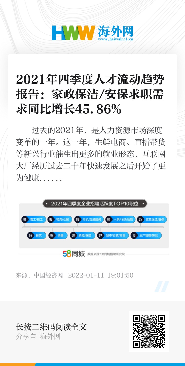 过去的2021年,是人力资源市场深度变革的一年。这一年,生鲜电商、直播带货等新兴行业催生出更多的就业形态,互联网大厂经历过去二十年快速发展之后开始了更为健康的运营模式,双减政策的施行更催使着教育行业进行深度变革……近日,为全面展现新业态、新变化对于就业市场的影响,国民招聘大平台58同城发布了2021年四季度人才流动趋势报告,从职位、薪资、城市等维度剖析了当前就业市场人才流动趋势,以帮助招聘方把握人才流向,并助力求职者准确掌握就业需求。