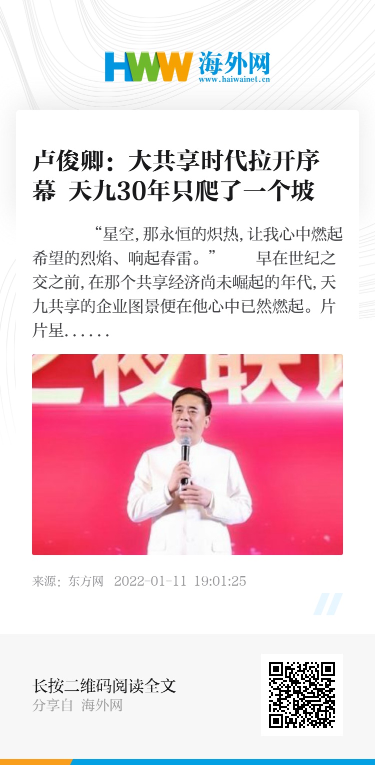 天九共享董事局主席卢俊卿在“2021中国共享经济年会”上分享企业发展历程与心得