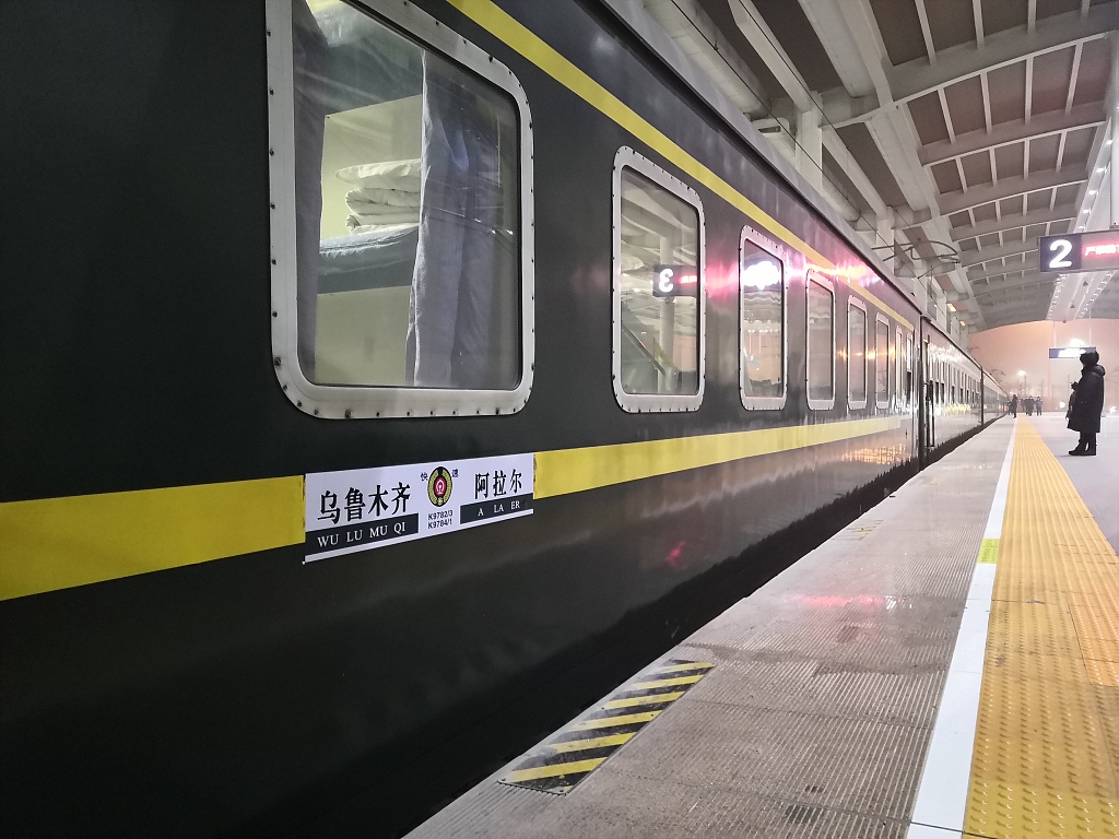 2022年1月10日,新疆,阿克苏至阿拉尔铁路开通运营。1月8日10时整,首张阿克苏至阿拉尔火车票出炉!按照全国铁路调整列车运行图的统一安排,新疆铁路于1月10日开通运营阿克苏至阿拉尔铁路。图片来源:视觉中国