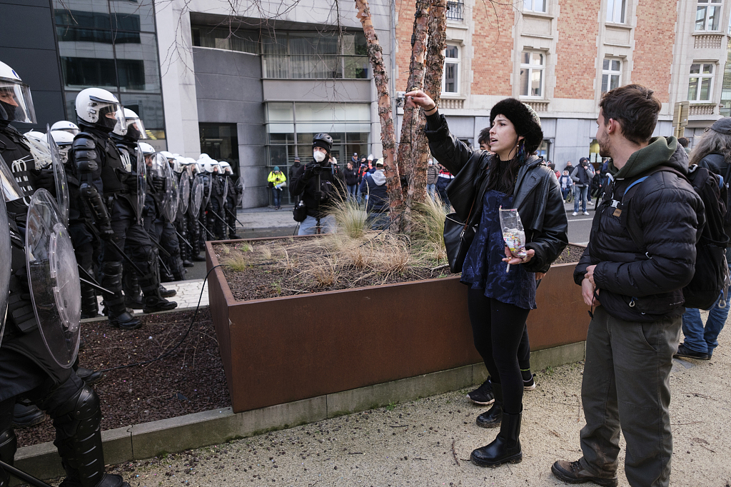 比利时数千人抗议新冠防疫规定 警方包围接近欧盟总部人群