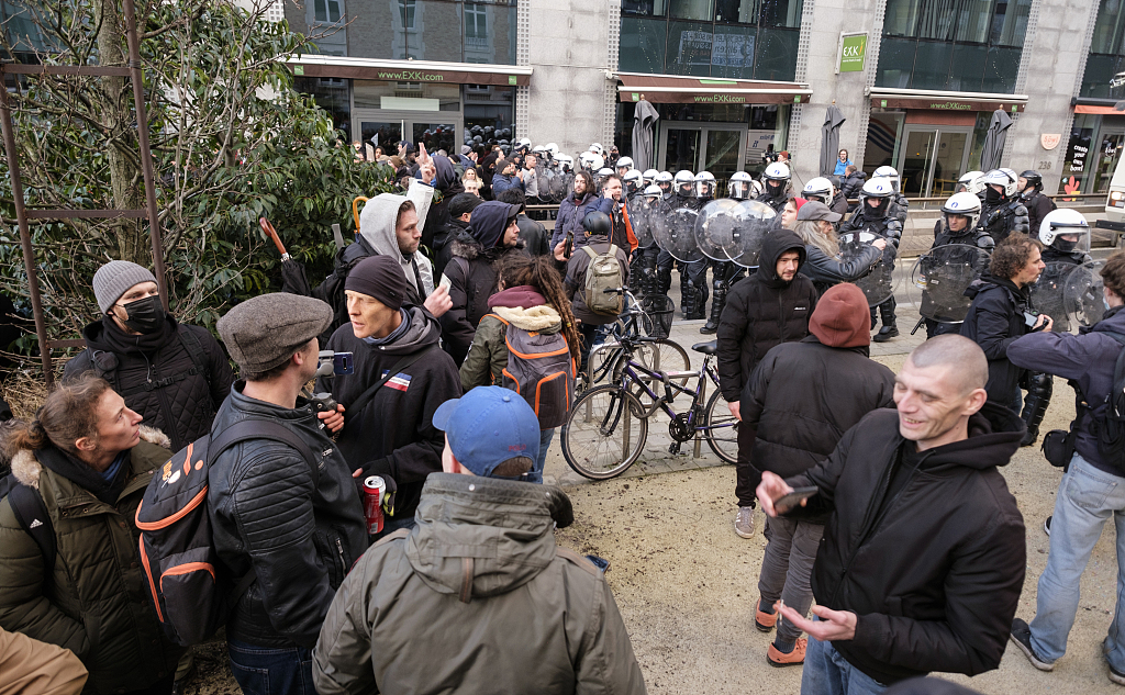 比利时数千人抗议新冠防疫规定 警方包围接近欧盟总部人群