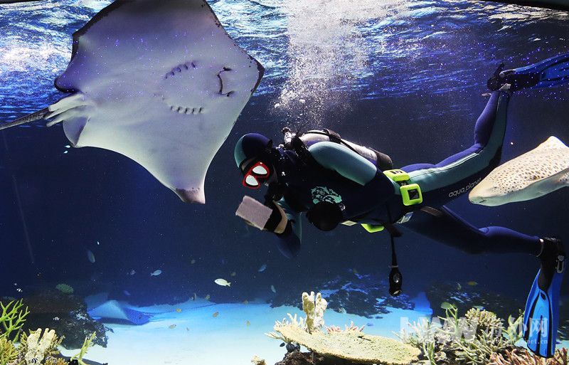 迎接农历新年 韩国水族馆进行水下大扫除