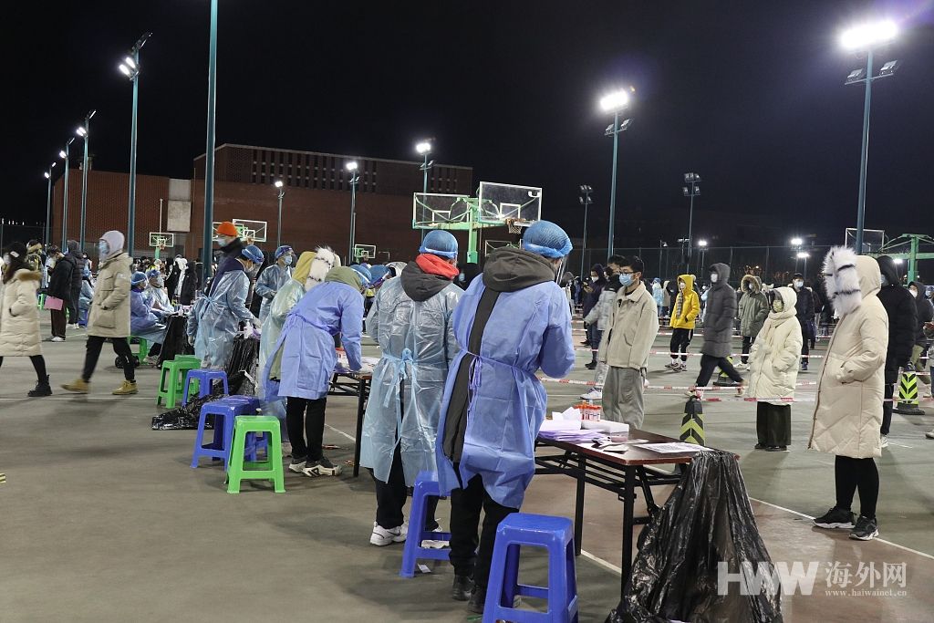 天津:医护人员与志愿者通宵值守 深夜为居民进行核酸检测