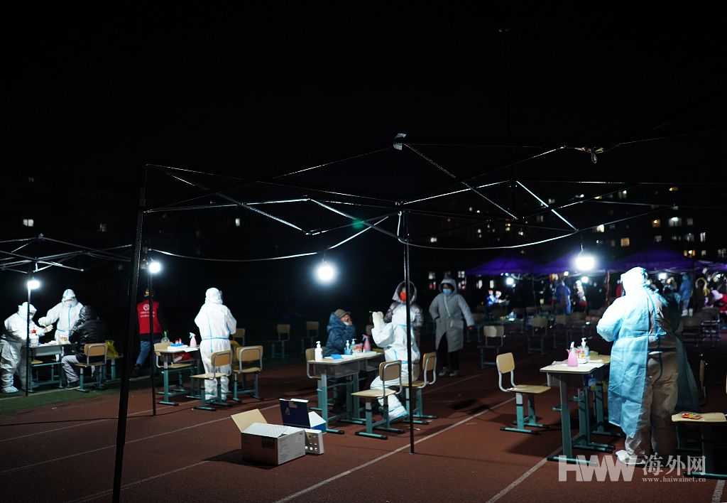 天津:医护人员与志愿者通宵值守 深夜为居民进行核酸检测