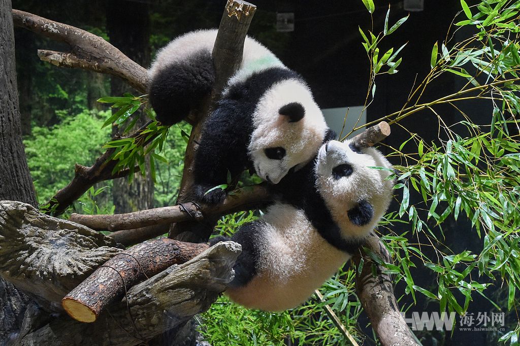 日本东京上野动物园大熊猫双胞胎幼崽12日首次公开亮相