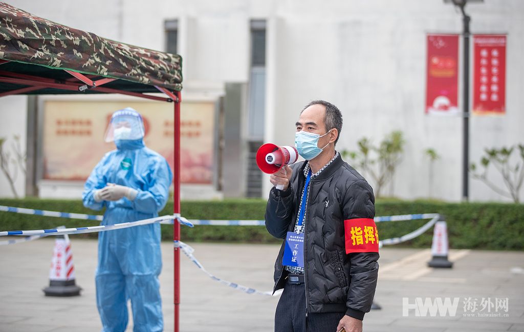 2022年1月12日,海口开展大规模人群核酸检测实战演练,在琼山区国兴街道省歌舞剧院检测点,演练有序进行。演练从下午三点开始,整个流程严格按照防疫要求执行,间距排队,登记信息、核酸检测。据悉,当天在海口全市各街道(乡镇)设有130个核酸采样点。(图:视觉中国)