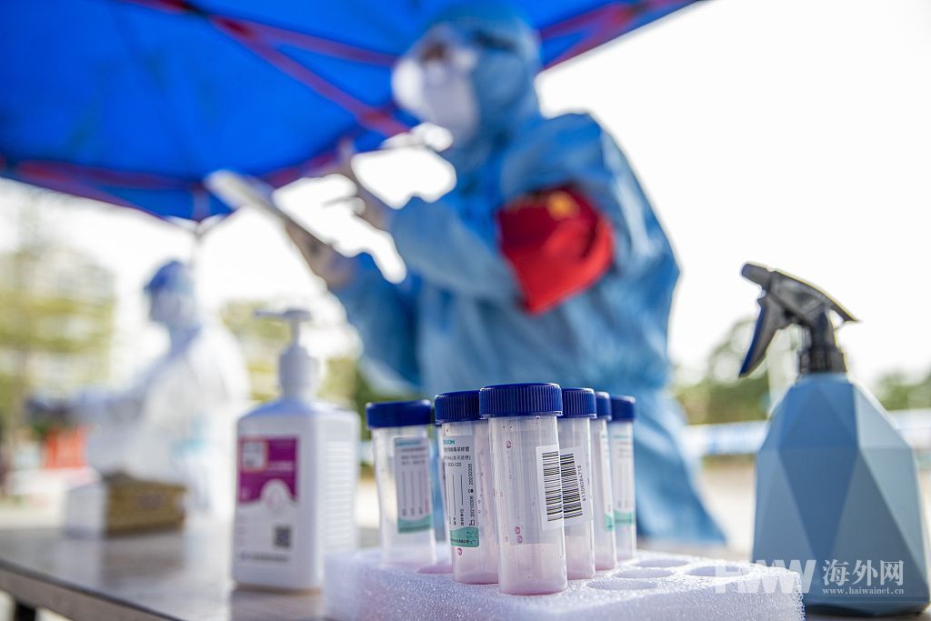 2022年1月12日,海口开展大规模人群核酸检测实战演练,在琼山区国兴街道省歌舞剧院检测点,演练有序进行。演练从下午三点开始,整个流程严格按照防疫要求执行,间距排队,登记信息、核酸检测。据悉,当天在海口全市各街道(乡镇)设有130个核酸采样点。(图:视觉中国)