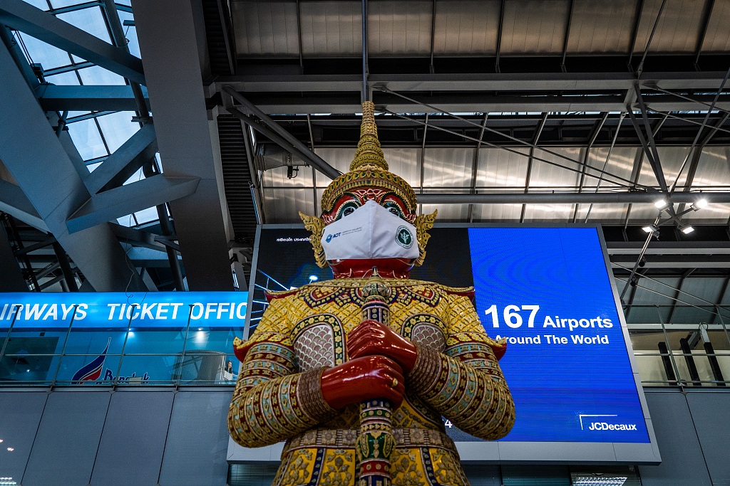 图为当地时间1月12日,泰国曼谷素万那普机场,新冠疫情下机场内人烟稀少。图片来源:视觉中国