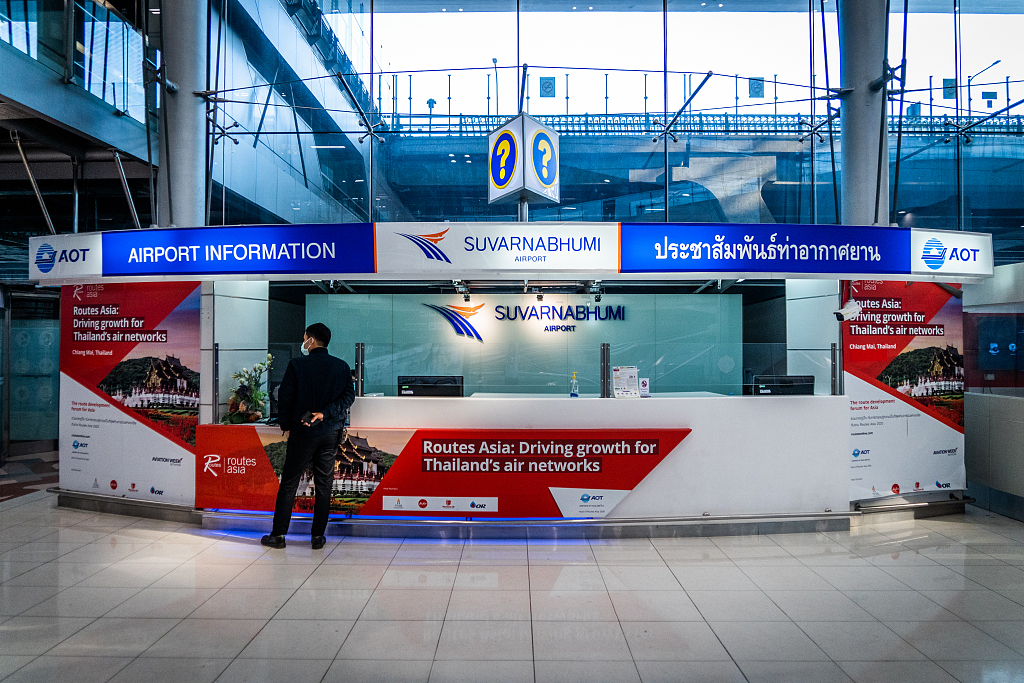 图为当地时间1月12日,泰国曼谷素万那普机场,新冠疫情下机场内人烟稀少。图片来源:视觉中国