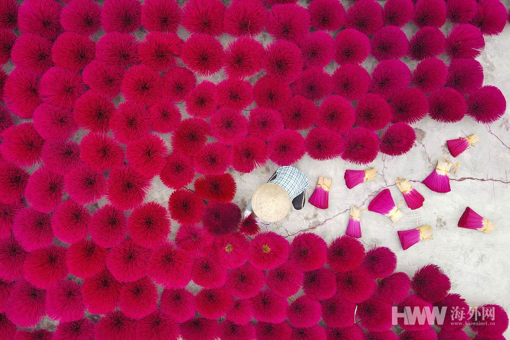 当地时间2022年1月12日,越南河内,越南农历新年庆祝活动之前,河内郊区工人在切割竹条制作香。(图:视觉中国)