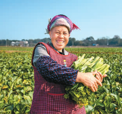 2022年1月2日,在湖南省常宁市板桥镇长冲铺村,菜农抢抓时机采收蔬菜。周秀鱼春摄(人民视觉)
