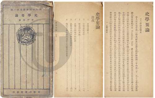 李大钊是中国共产主义运动的先驱,也是中国马克思主义史学的奠基人之一。他留下大量著作、文稿和译著,内容涉及哲学、经济学、法学、历史学、伦理学、美学、新闻学、图书管理学等诸多领域,其中《史学要论》集中、系统地反映了他的历史观和史学观。1924年、1926年,商务印书馆两次出版《史学要论》。因受众量小、存世量少,这本1926年《史学要论》格外珍贵,被评定为二级文物。