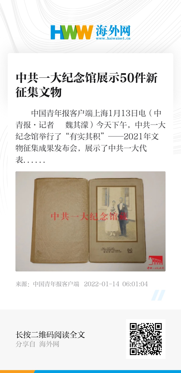 中共一大纪念馆党委书记、馆长薛峰说,2021年是党的百年华诞,社会各界对中共一大纪念馆的工作非常支持。过去一年中,中共一大纪念馆入藏各类藏品1500余件,并从中挑选出250余件(套)参加文物鉴定会,本次活动即是从被鉴定为文物的173件文物中挑选出50件,向社会展示。