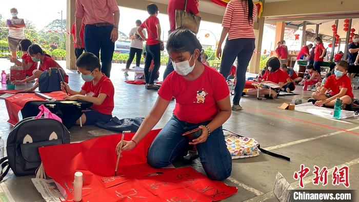 芭威特拉一边展示着自己写的春联,一边告诉记者,自己学习中文已经四年了,“妈妈喜欢中文,所以把我送进华文小学”。新村华小的李老师告诉记者,其实不仅芭威特拉,新村华小有一成左右的学生是非华裔,他们和华人小朋友一起学中文,写中文。当天的写春联比赛,马来裔、印度裔的学生都有积极参与。芭威特拉也调皮地向记者展示沾满墨汁的双手并笑着说,自己喜欢中文,“写(毛笔)字很有意思”。