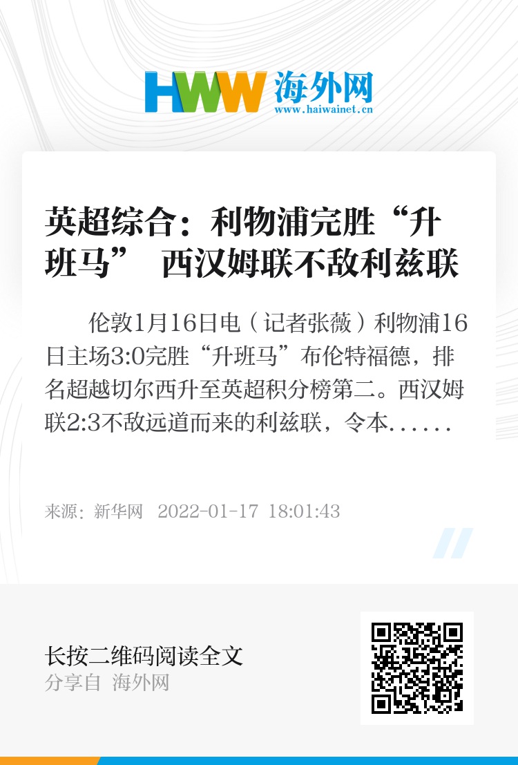 新华社伦敦1月16日电(记者张薇)利物浦16日主场3:0完胜“升班马”布伦特福德,排名超越切尔西升至英超积分榜第二。西汉姆联2:3不敌远道而来的利兹联,令本已胶着的第四名之争更加白热化。